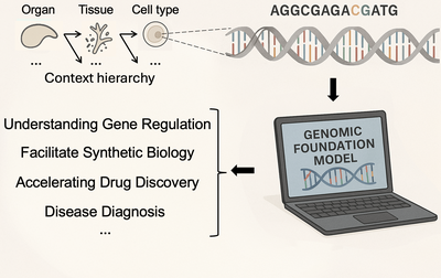 The human genome sequence can be viewed as a ”genome language” that encodes biological information. Our group develop the core technologies of genomic foundation models to gain deep insights into the complex regulatory syntax in